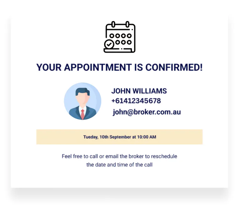 Your customers will first enter their contact details and the estimated loan amount they need, whether for a new home loan or a refinance. They’ll then select their preferred date and time for a callback.